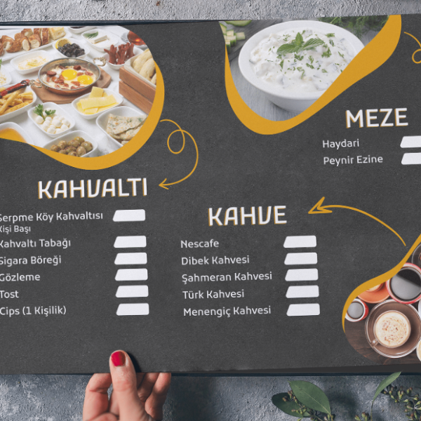 Restoran, kafe ve oteller için müşterilerinizin iştahını kabartacak menüler, dikkat çekici broşürler, indirim kuponları ve mekanınıza kimlik katacak tüm baskı işlerini yapıyoruz.